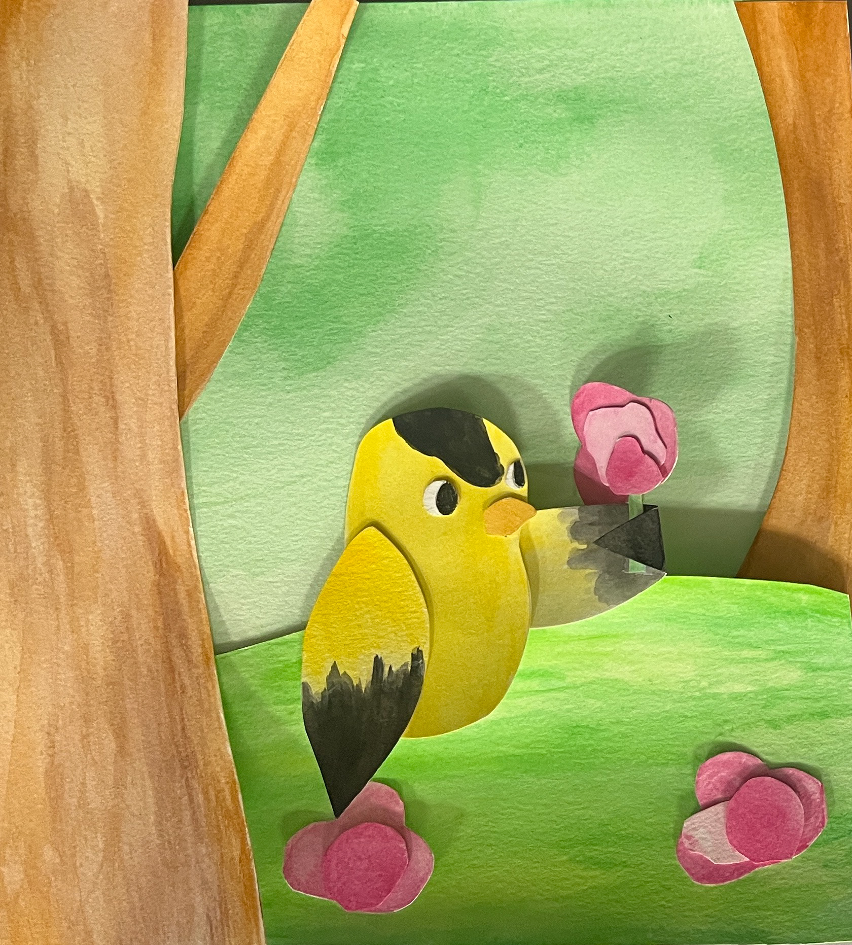 After the initial research phrase, I experimented with different mediums and decided to pursue a mixture of cut paper and watercolor paints. By using cut paper, I played with the page compositions before committing to final designs. I created a style guide and character designs as references to go back to throughout the process.